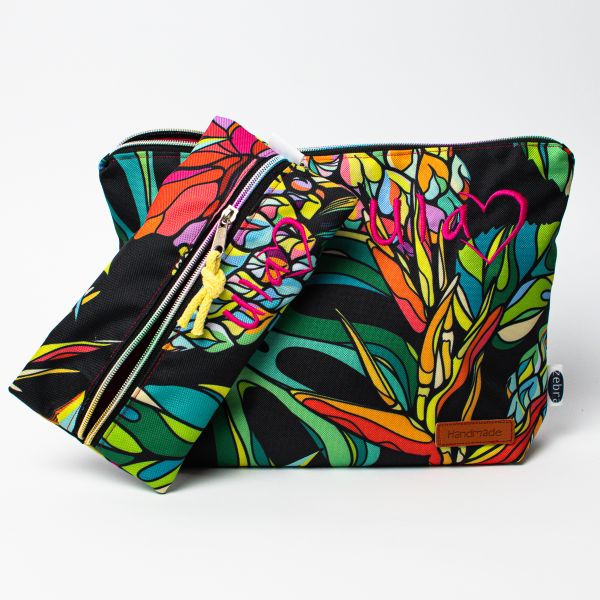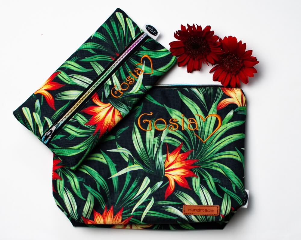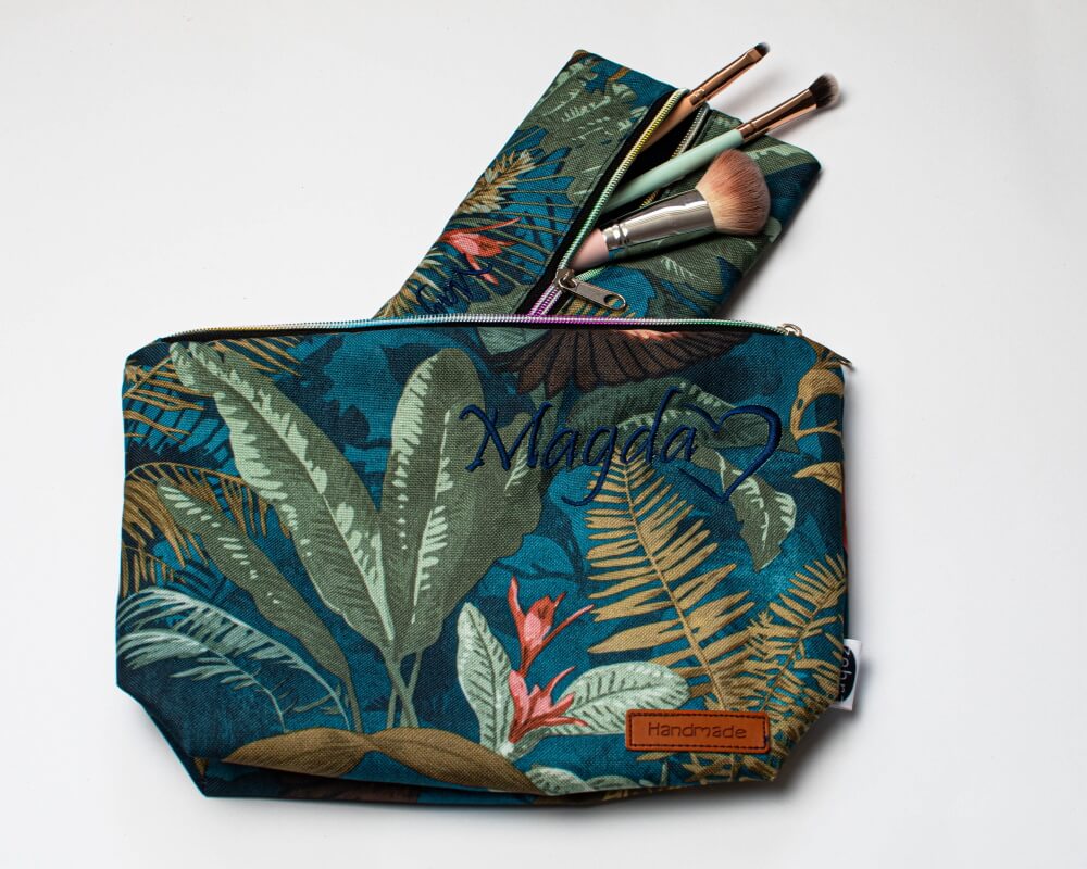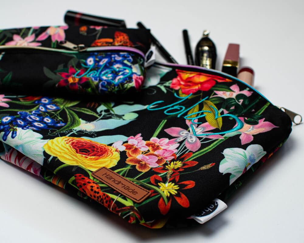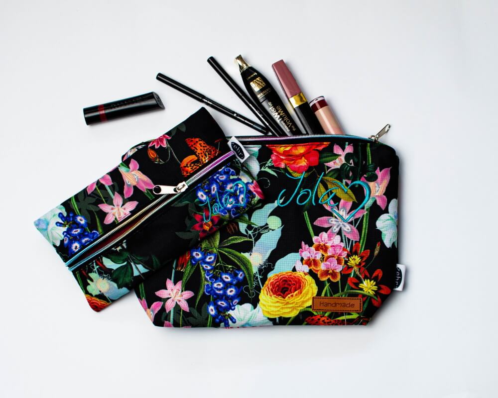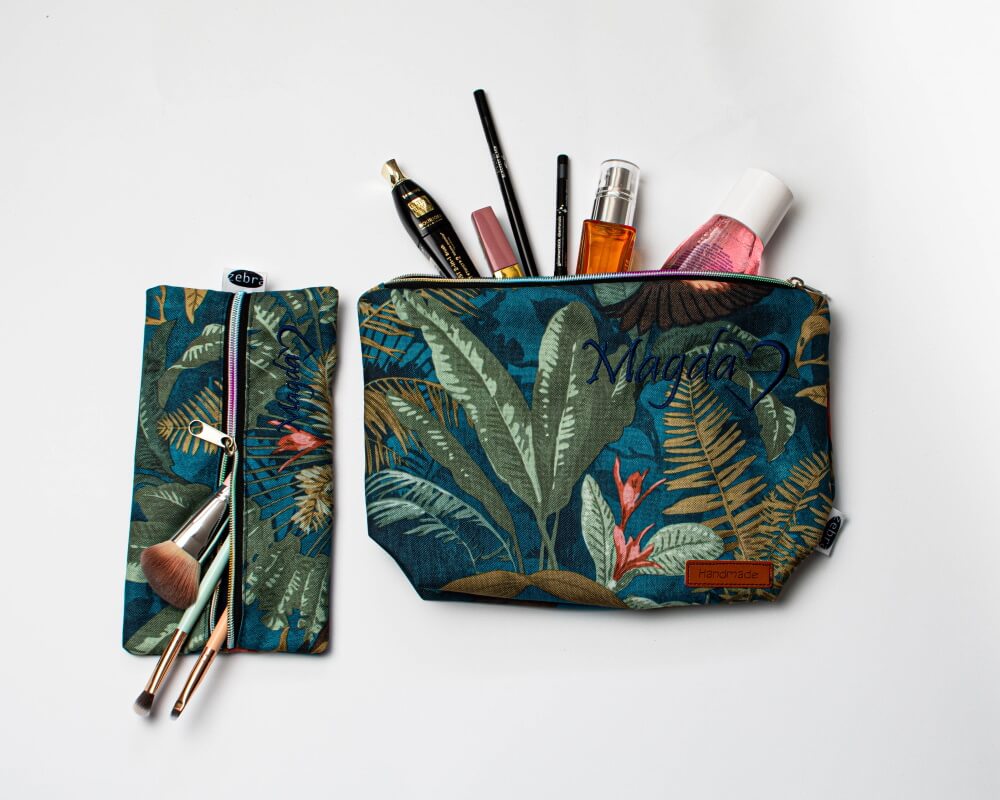 Kosmetyczka mniejsza pomieści okulary czy podręczne kosmetyki, kosmetyczka większa (z małą kieszonką w środku) jest wprost idealna na przechowywanie większych gabarytowo produktów.