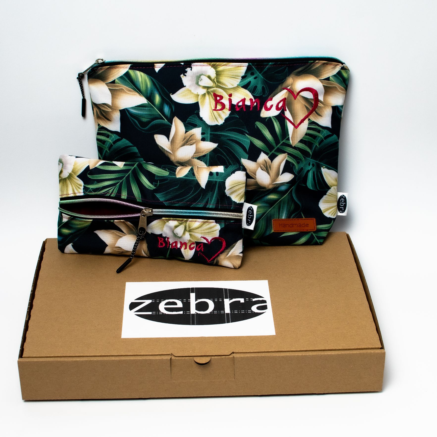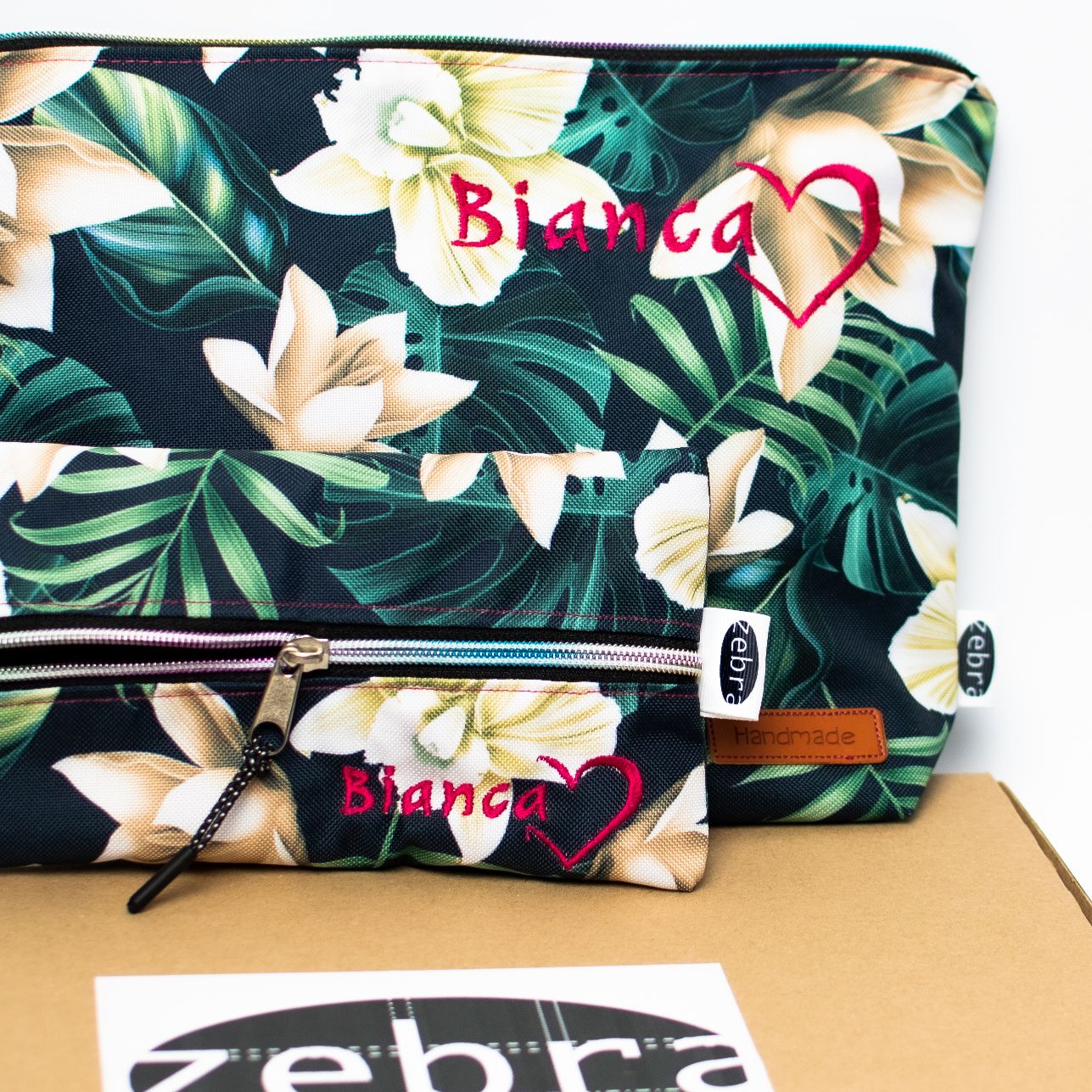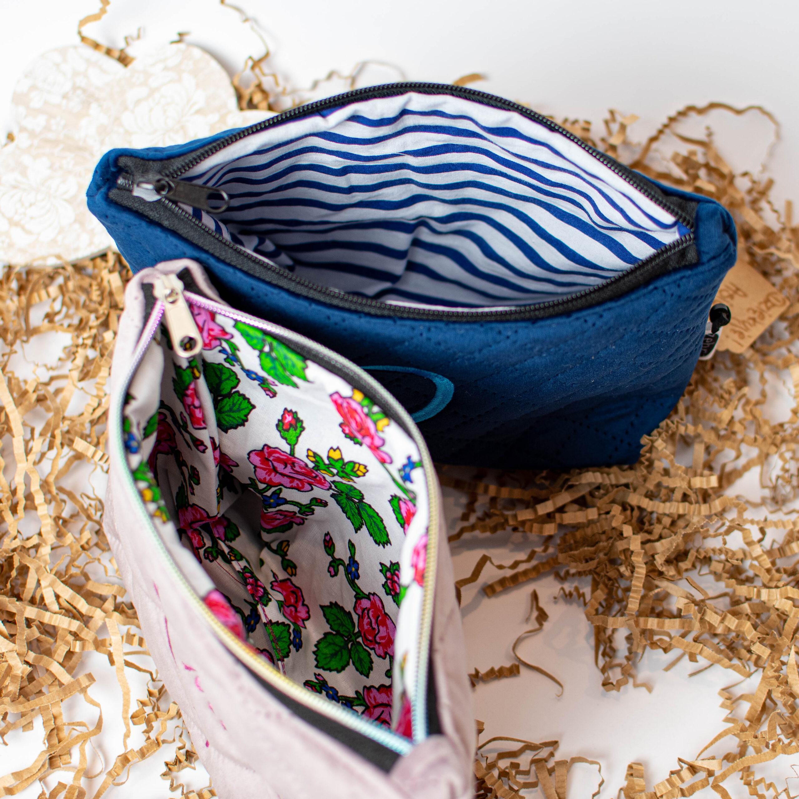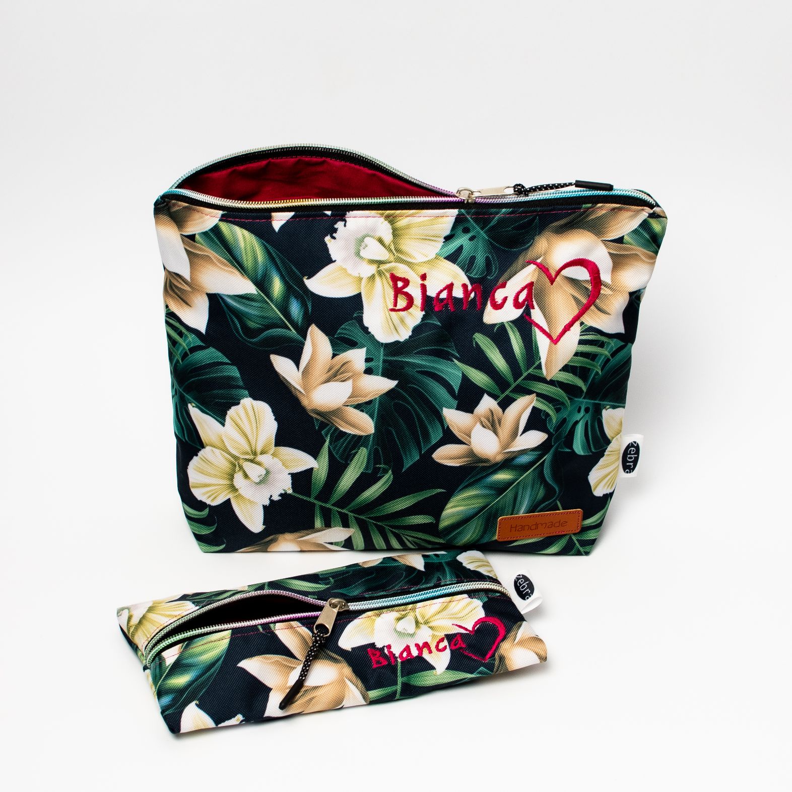 Kosmetyczka mniejsza pomieści okulary czy podręczne kosmetyki, kosmetyczka większa (z małą kieszonką w środku) jest wprost idealna na przechowywanie większych gabarytowo produktów.
