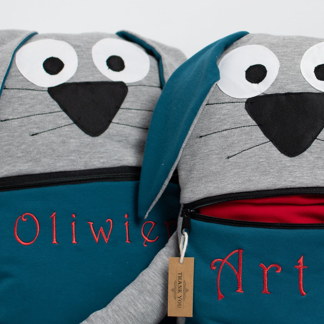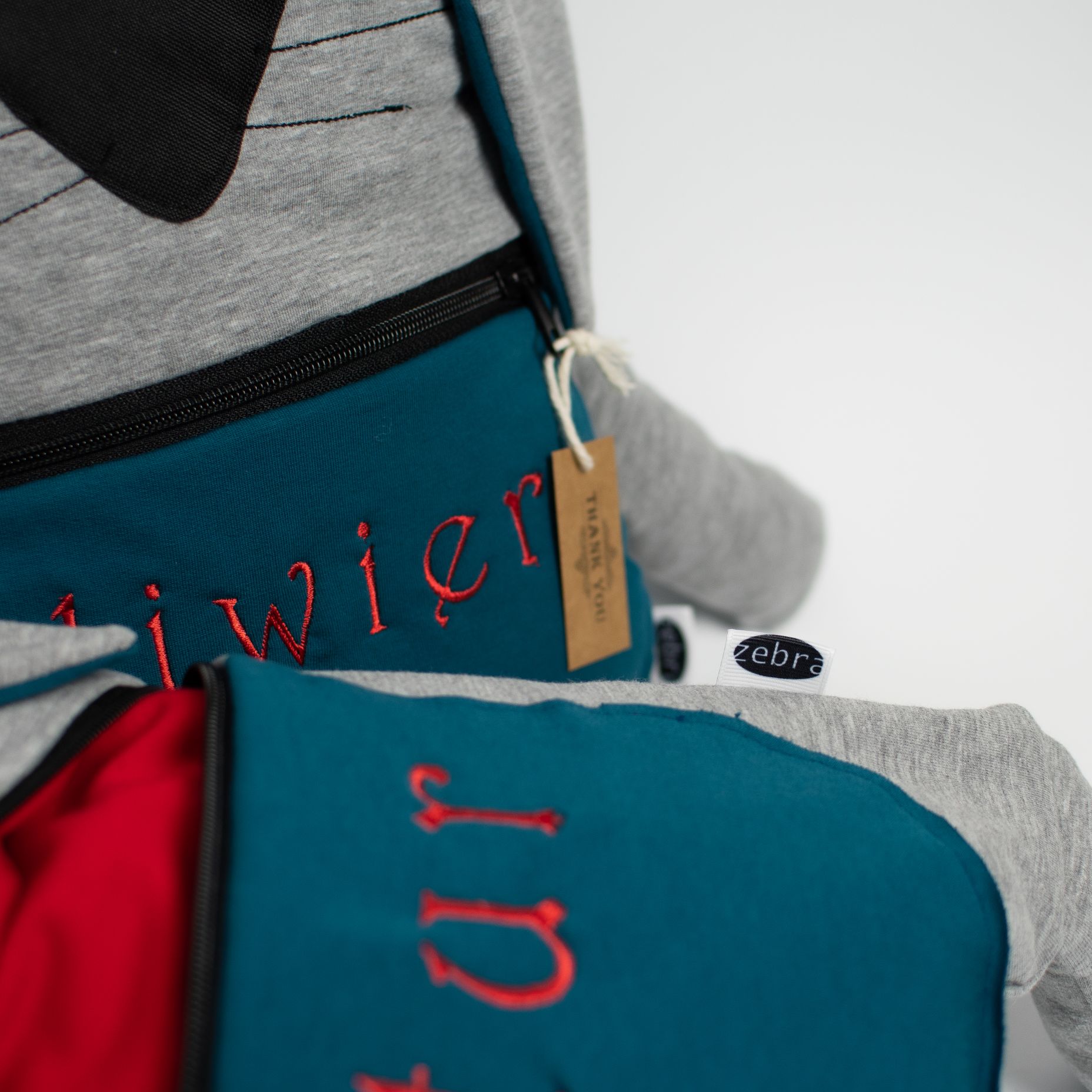 Po zamówieniu produktu wybierasz kolor oraz podajesz haft, w odpowiedzi dostajesz 3 formy haftu do wyboru, wybierasz jeden i rozpoczyna się produkcja.